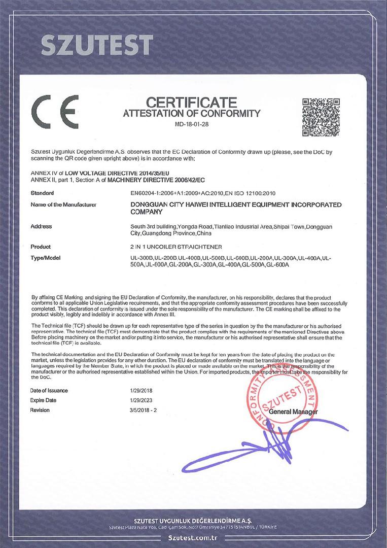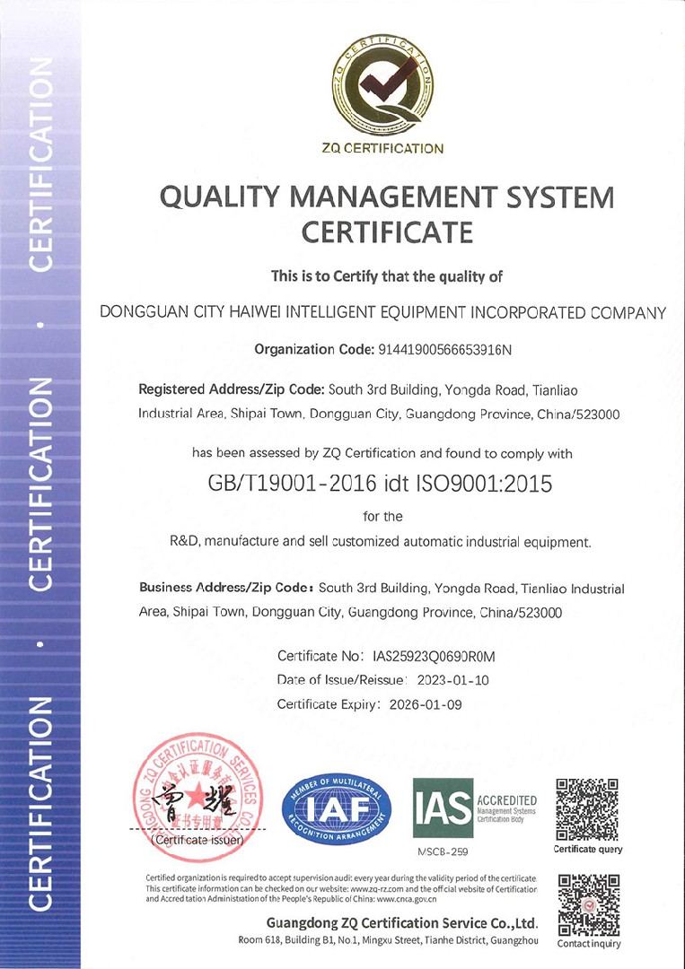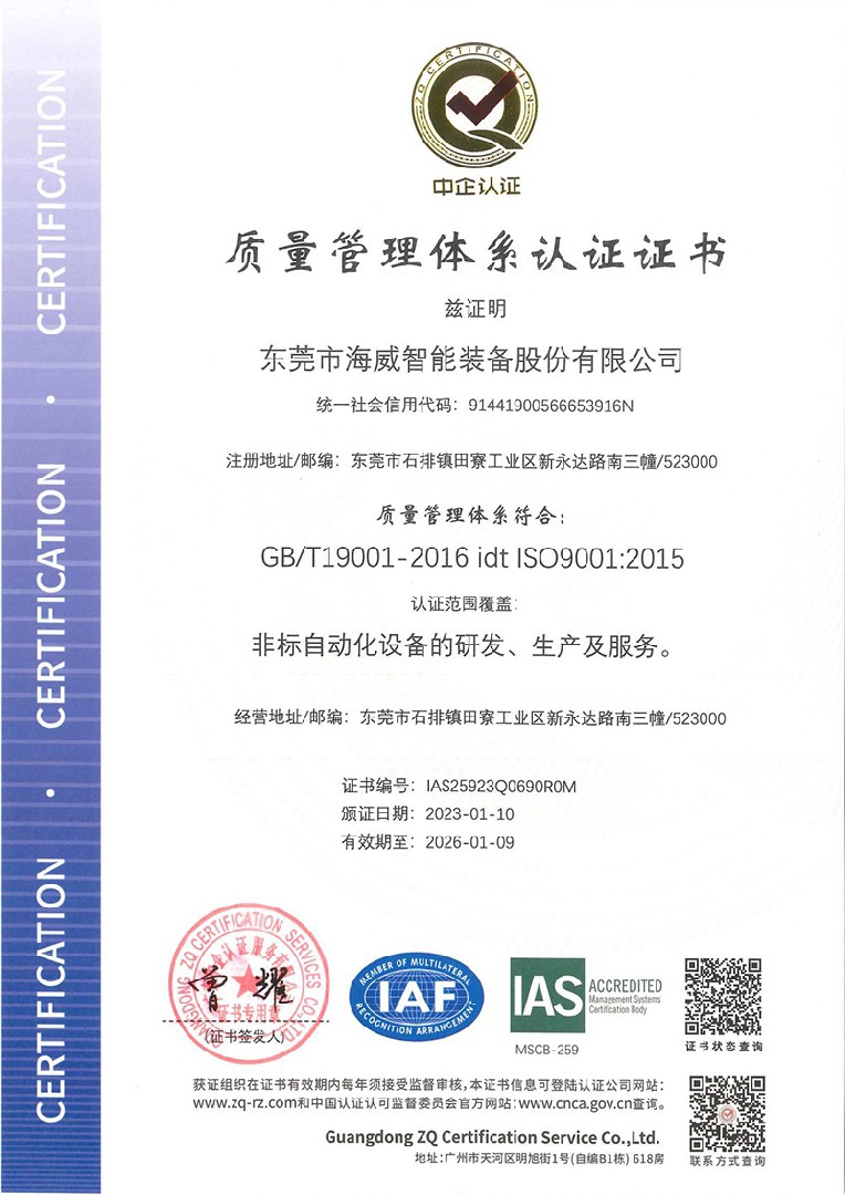 东莞市丝瓜视频在线免费下载污智能装备股份有限公司是一家专注于金属卷料冲压、剪切、激光落料等自动化设备制造领域的公司,集研发、生产、销售和服务于一体,。已全面通过ISO9001、ISO4001、ISO5001三大体系认证,并实施了ERP、CRM、MES等企业信息化项目。
