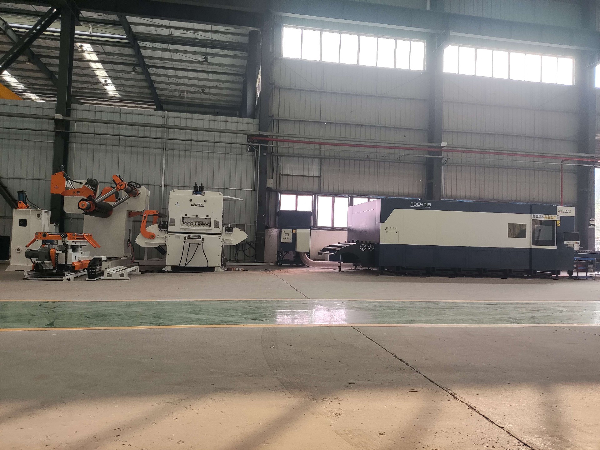 上料→开卷→入料→挡料→整平一定尺送料→挡料→激光切割…
